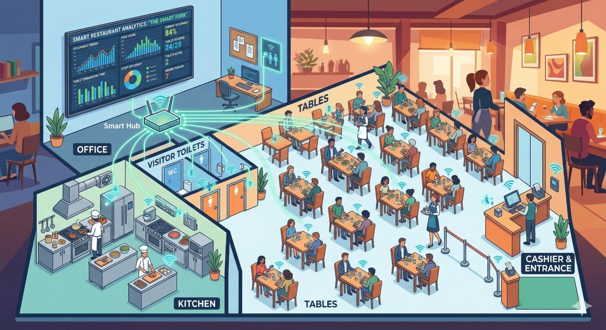Med modern teknik kan du få värdefulla insikter om hur din restaurang faktiskt används utan att inkräkta på vare sig kunders eller personals integritet. Genom anonym data kan du följa hur människor rör sig i lokalerna, hur ofta olika ytor används och hur länge exempelvis toaletter eller andra faciliteter är i bruk. Resultatet är tydlig statistik och rapporter som hjälper dig att fatta bättre beslut kring bemanning, flöden i lokalen, service och underhåll. Du får en bättre förståelse för hur din verksamhet fungerar i praktiken och kan optimera både upplevelsen för gästerna och arbetsmiljön för personalen. All data samlas in helt anonymt och fokus ligger på mönster och användning, aldrig på individer.